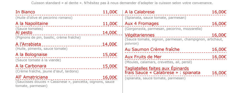 NOS SPAGHETTIS OU TAGLIATELLES « MAISON »